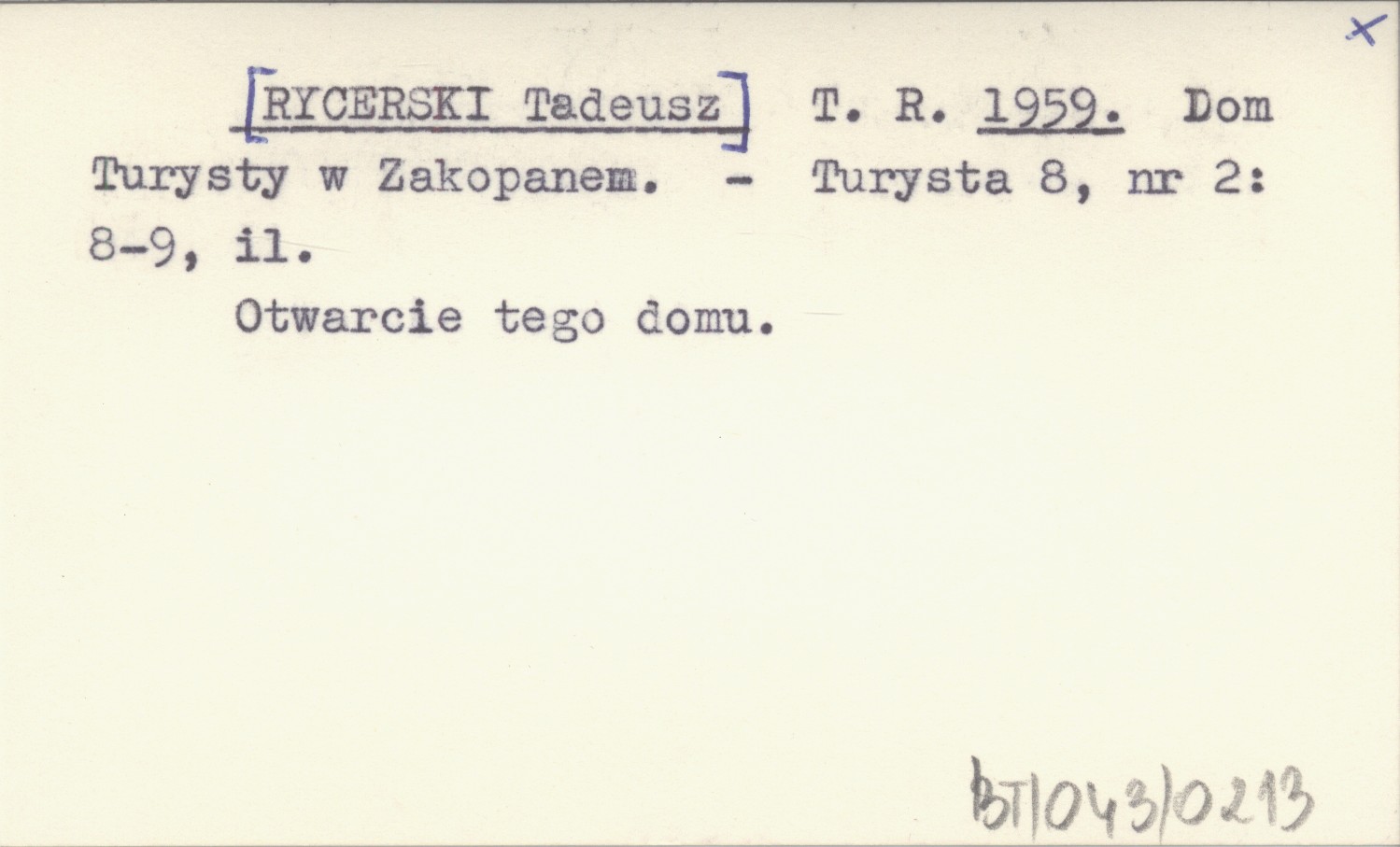 T. R. [RYCERSKI Tadeusz] 1959 Dom Turysty w Zakopanem.