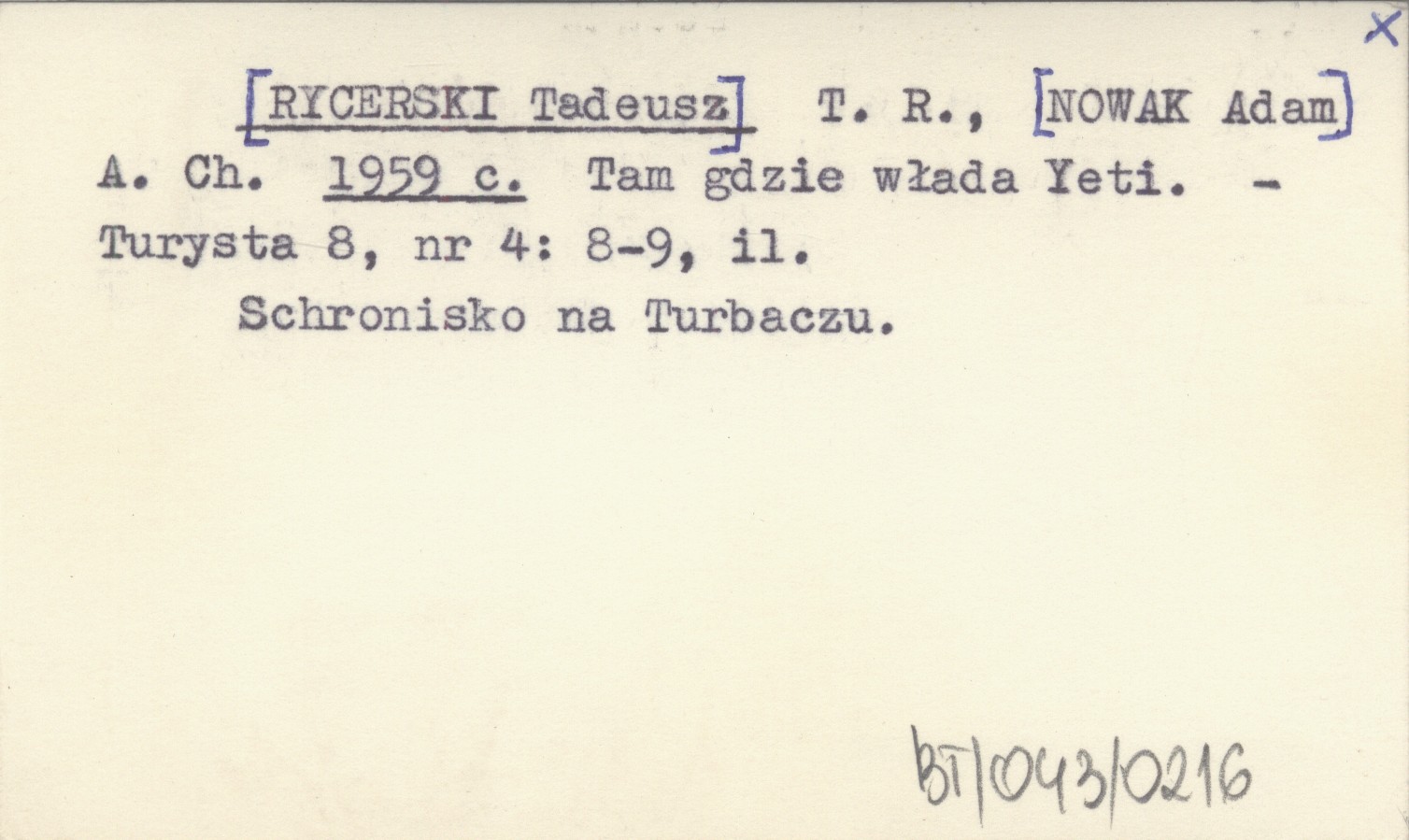 T. R. [RYCERSKI Tadeusz] [NOWAK, Adam] A. Ch. ; 1959 c Tam gdzie włada Yeti.