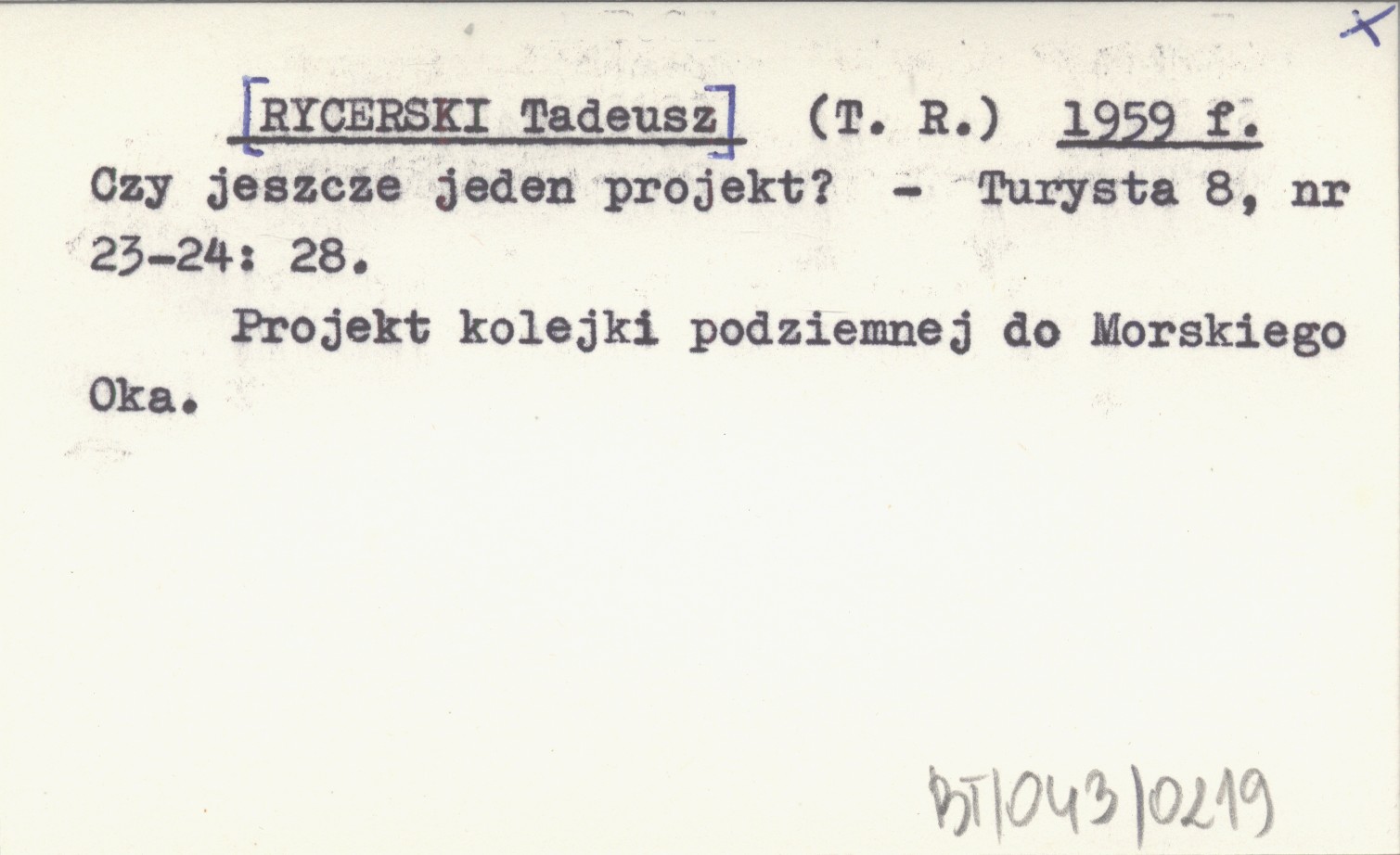 (T. R.) [RYCERSKI Tadeusz] 1959 f Czy jeszcze jeden projekt?