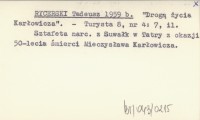 RYCERSKI Tadeusz 1959 b "Drogą życia Karłowicza".