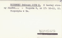 T. R. [RYCERSKI Tadeusz] 1959 Dom Turysty w Zakopanem.
