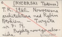 T. R. [RYCERSKI Tadeusz] 1960 Nowoczesna architektura nad Rybim Potokiem.