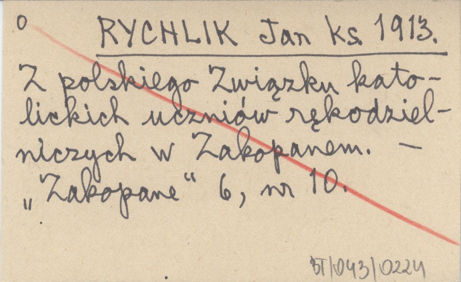 RYCHLIK Jan ks. 1913 Z polskiego Związku katolickich uczniów rękodzielniczych w Zakopanem.