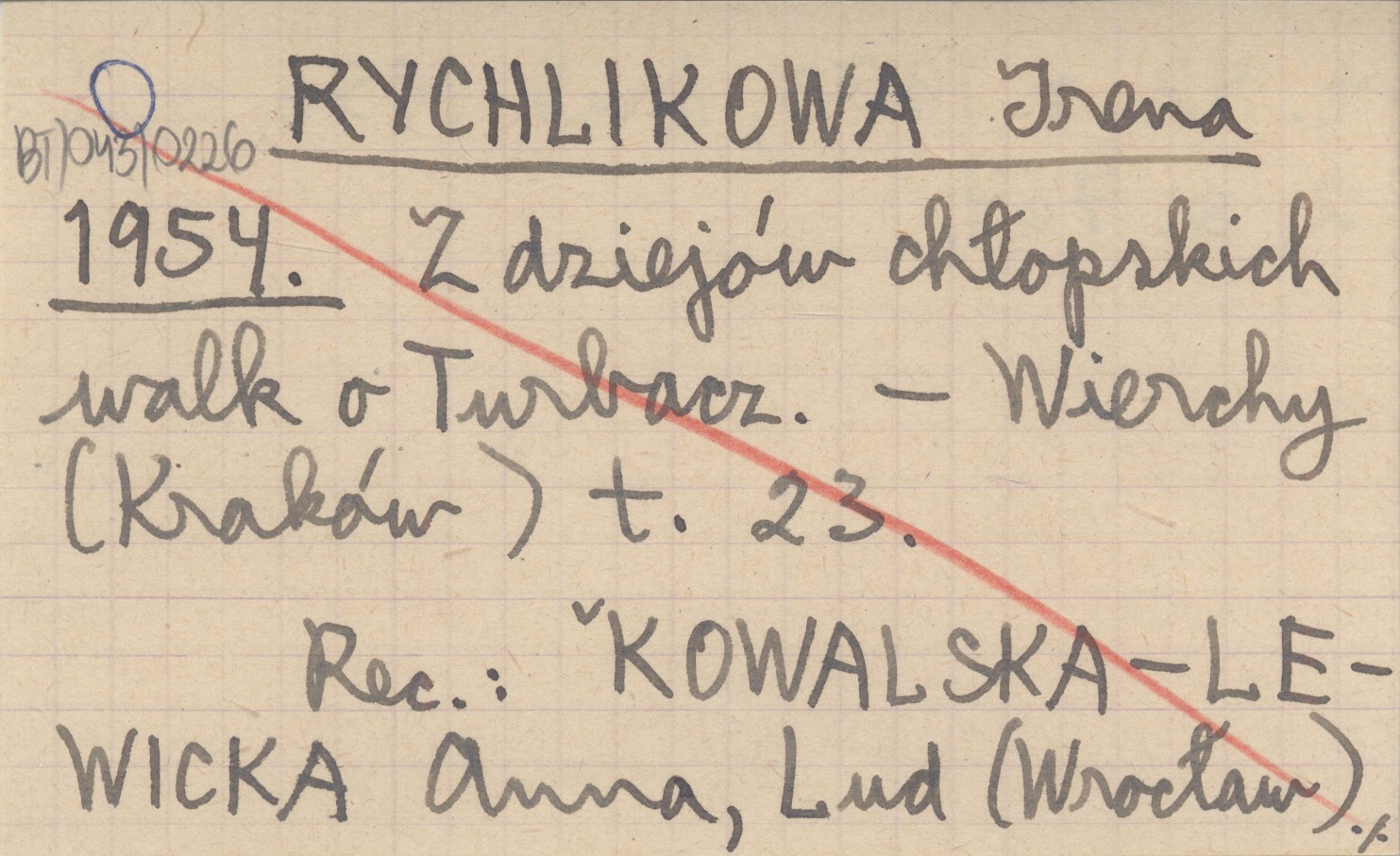 RYCHLIKOWA Irena 1954 Z dziejów chłopskich walk o Turbacz.