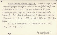 RYCHLIKOWA Irena 1957 a Realizacja społeczno-gospodarczych reform terezjańsko-józefińskich w Galicji (na przykładzie klucza wielkoporębskiego w powiecie limanowskim).