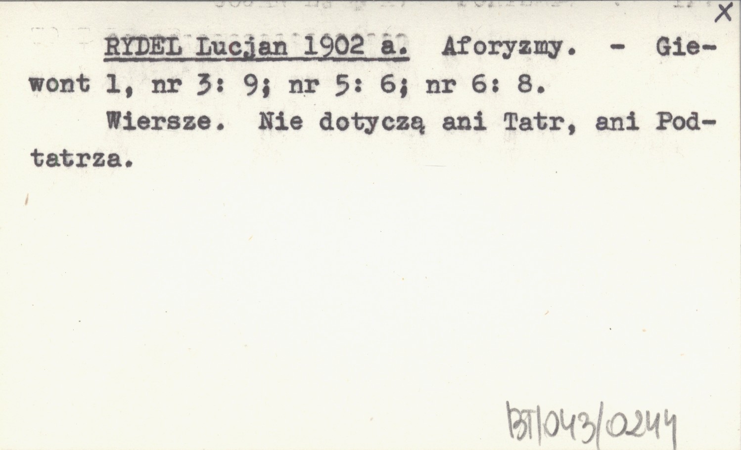 Giewont, 1, nr 3: 9 ; nr 5: 6 ; nr 6: 8. Wiersze. Nie dotyczą ani Tatr, ani Podtatrza.