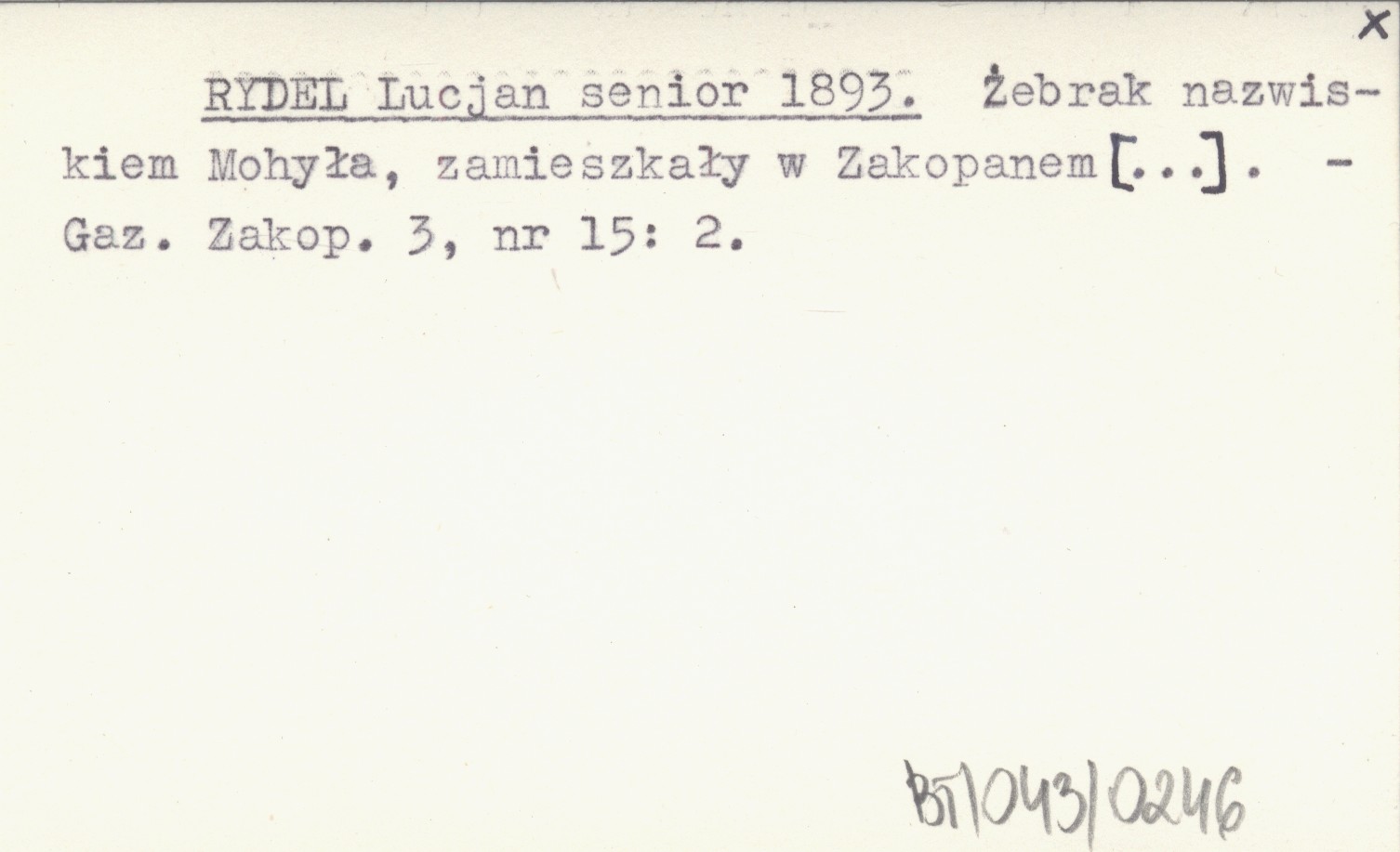 Żebrak nazwiskiem Mohyła, zamieszkały w Zakopanem [...].