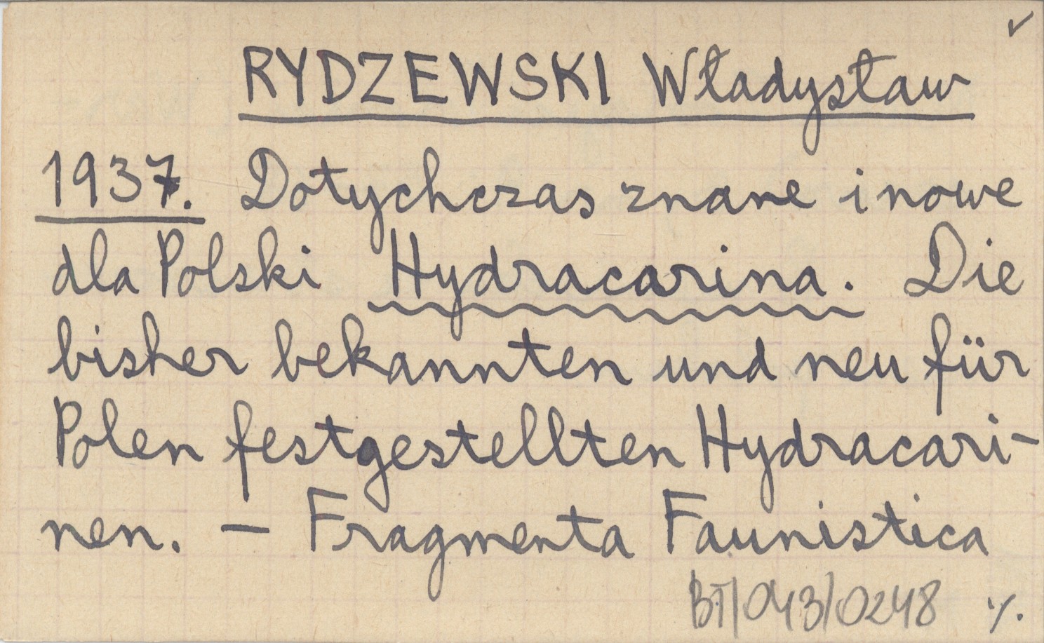 RYDZEWSKI Władysław 1937 Dotychczas znane i nowe dla Polski Hydracarina. Die bisher bekannten und neu für Polen festgestellten Hydracarinen.