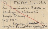 RYGIER Leon 1925 Św. Franciszek z Assyżu w ideologji Witkiewicza.