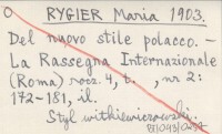 RYGIER Maria 1903 Del nuovo stile polacco.