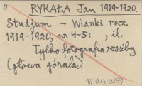 RYKAŁA Jan 1919-1920 Studjum.