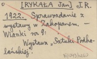 J. R. [RYKAŁA Jan] 1922 Sprawozdanie z wystawy w Zakopanem.