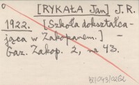 J. R. [RYKAŁA Jan] 1922 [Szkoła dokształcająca w Zakopanem].