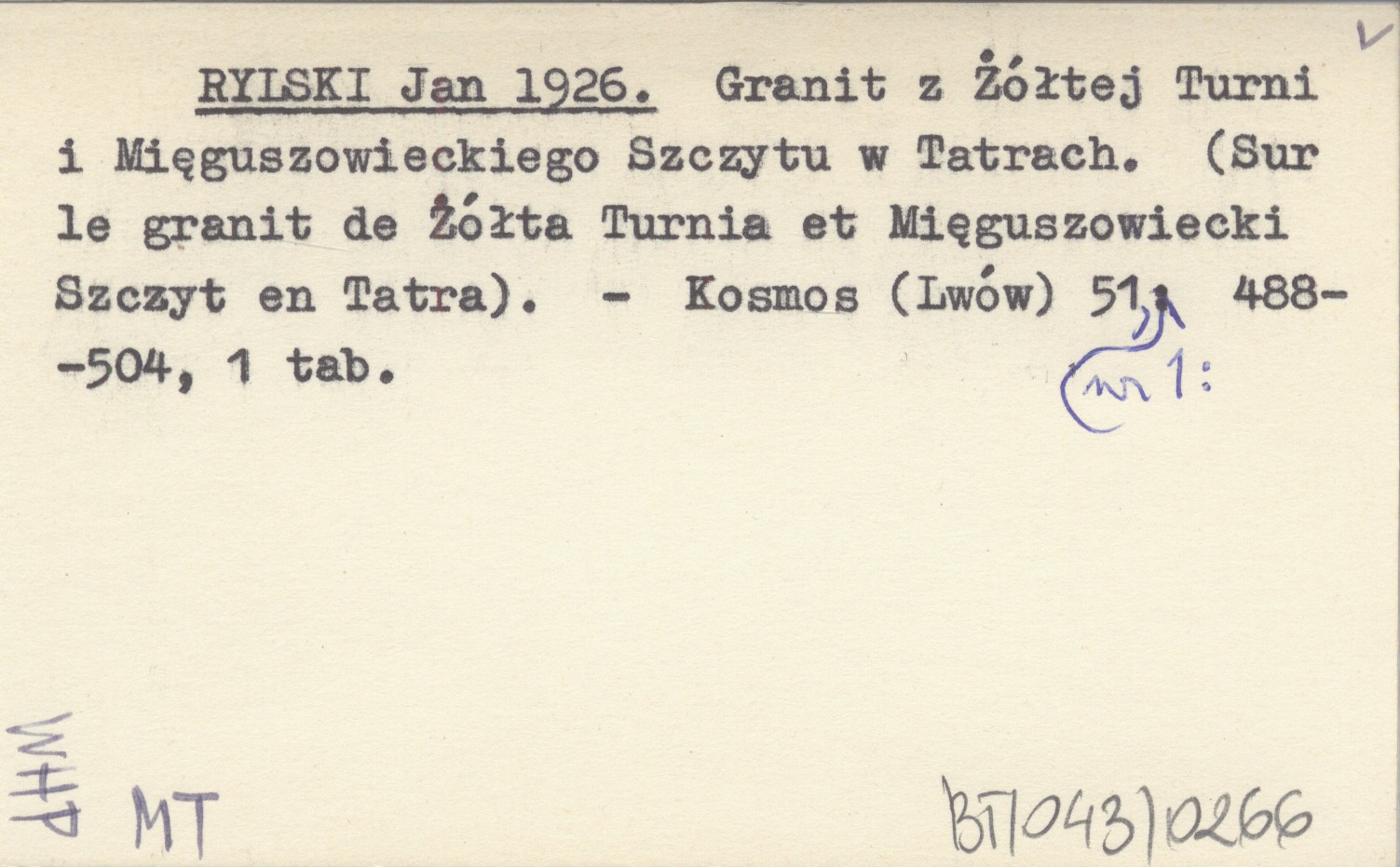 RYLSKI Jan 1926 Granit z Żółtej Turni i Mięguszowieckiego Szczytu w Tatrach. (Sur le granit de Żółta Turnia et Mięguszowiecki Szczyt en Tatra).