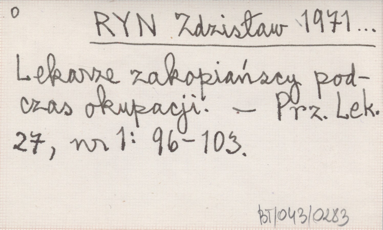 RYN Zdzisław 1971... Lekarze zakopiańscy podczas okupacji.