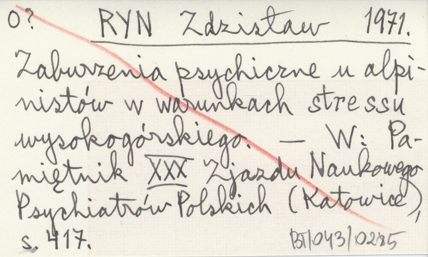 RYN Zdzisław 1971 Zaburzenia psychiczne u alpinistów w warunkach stressu wysokogórskiego.
