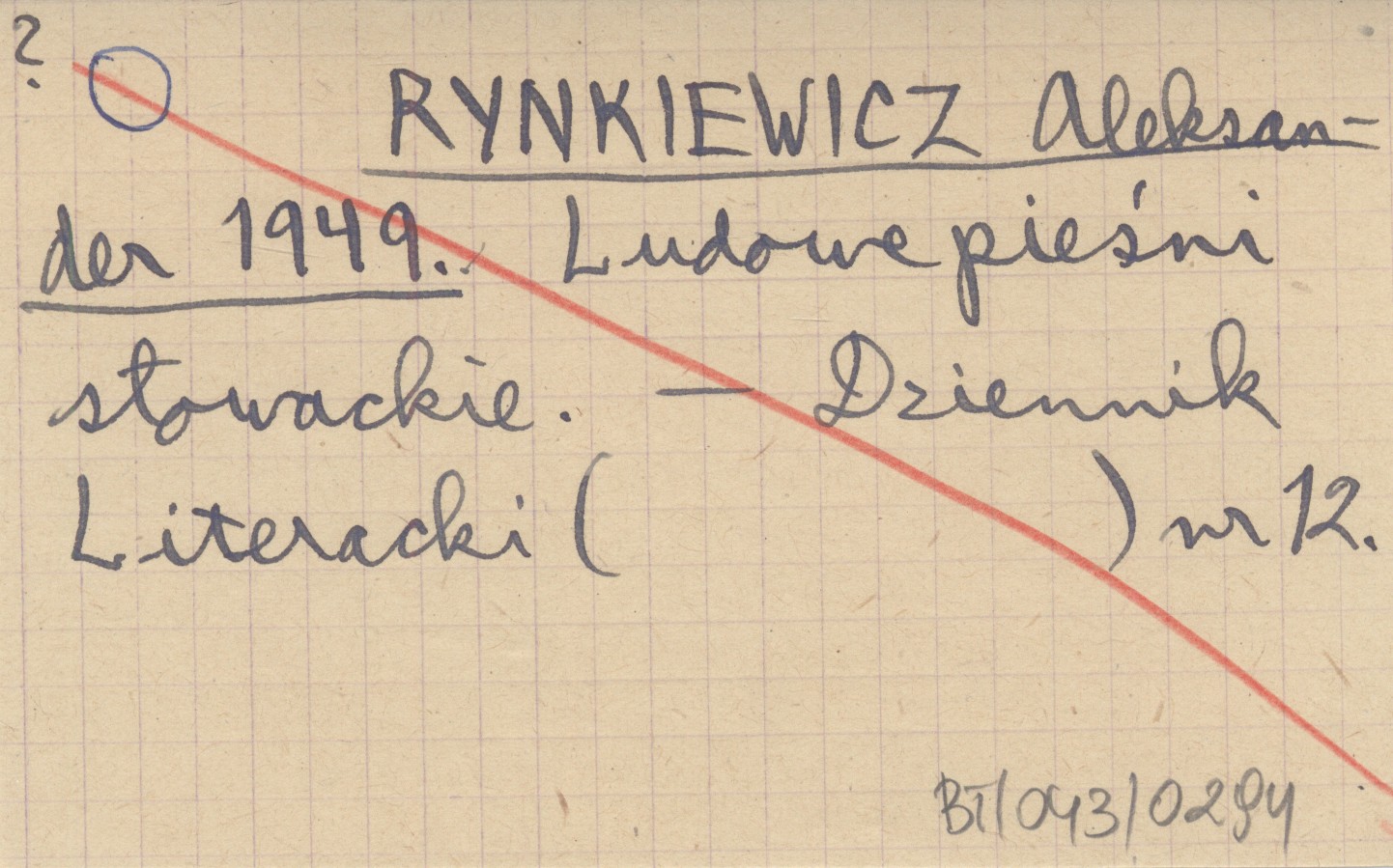 RYNKIEWICZ Aleksander 1949 Ludowe pieśni słowackie.