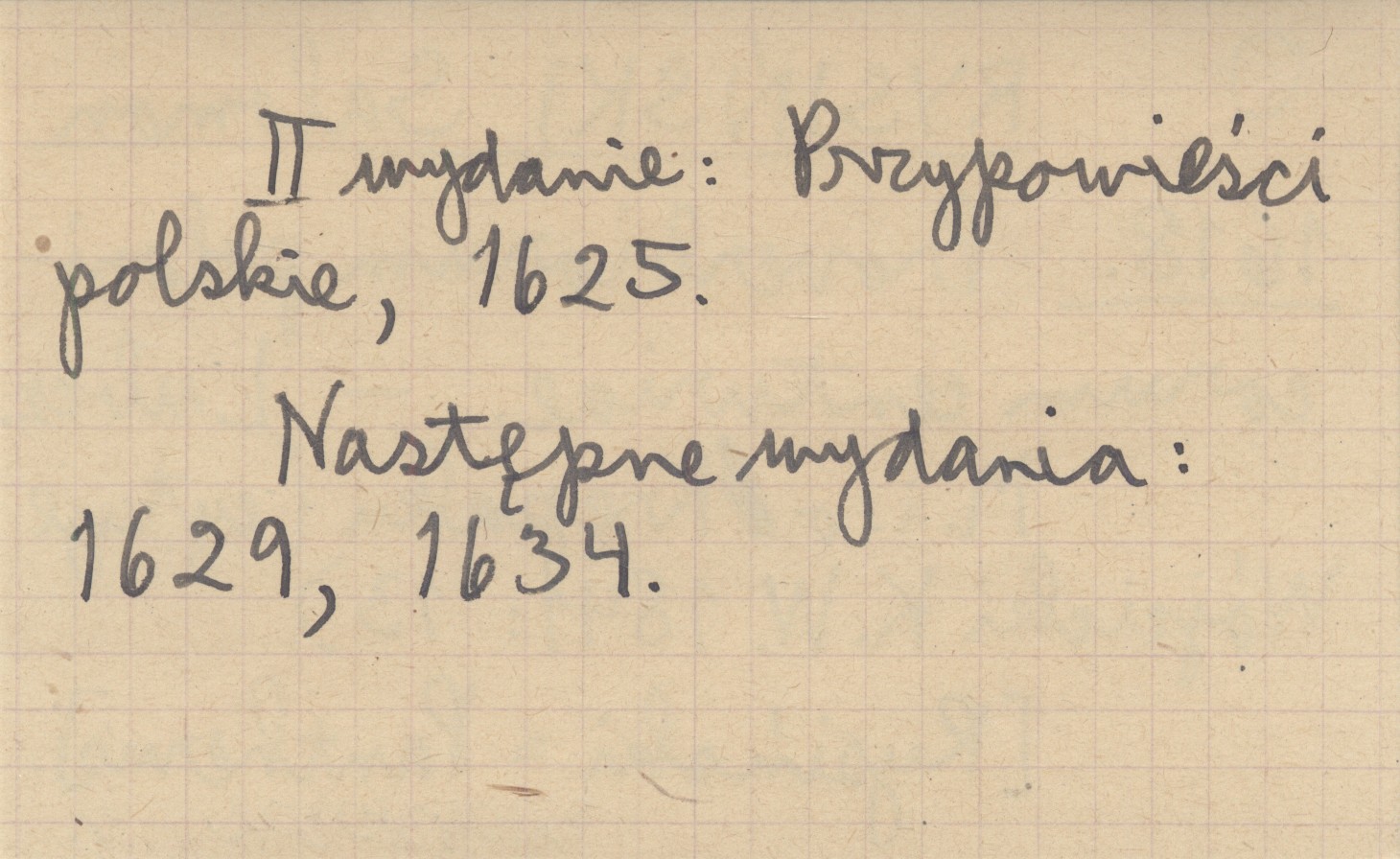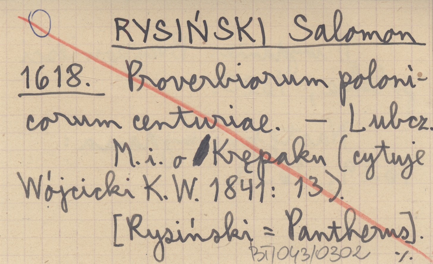 Lubcz. , M.i. o Krępaku (cytuje Wójcicki K. W. 1841: 13). [Rysiński = Pantherns]. II wydanie: Przypowieści polskie, 1625. Następne wydania: 1629, 1634.
