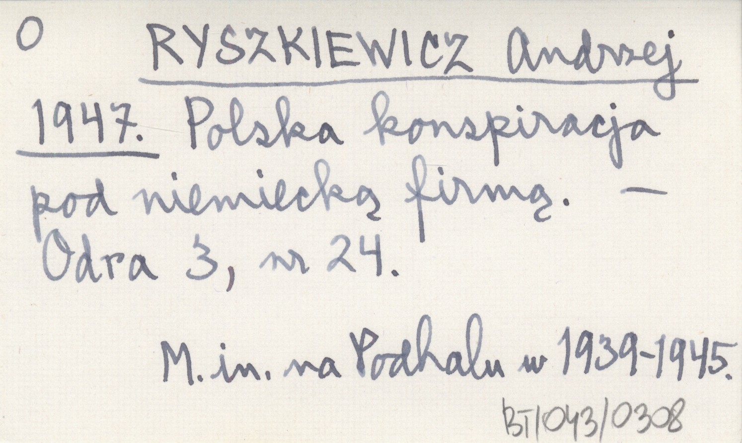 RYSZKIEWICZ Andrzej 1947 Polska konspiracja pod niemiecką firmą.