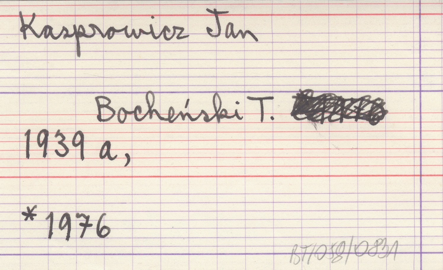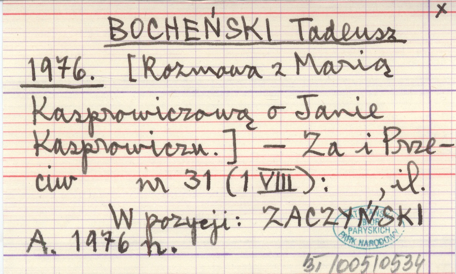 BOCHEŃSKI Tadeusz 1976 [Rozmowa z Marią Kasprowiczową o Janie Kasprowiczu.].