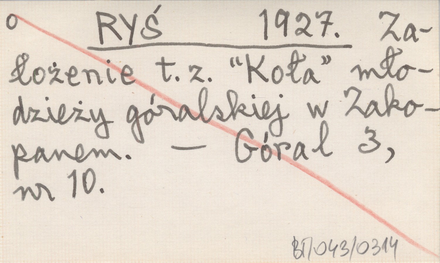 RYŚ 1927 Założenie t. z. "Koła" młodzieży góralskiej w Zakopanem.