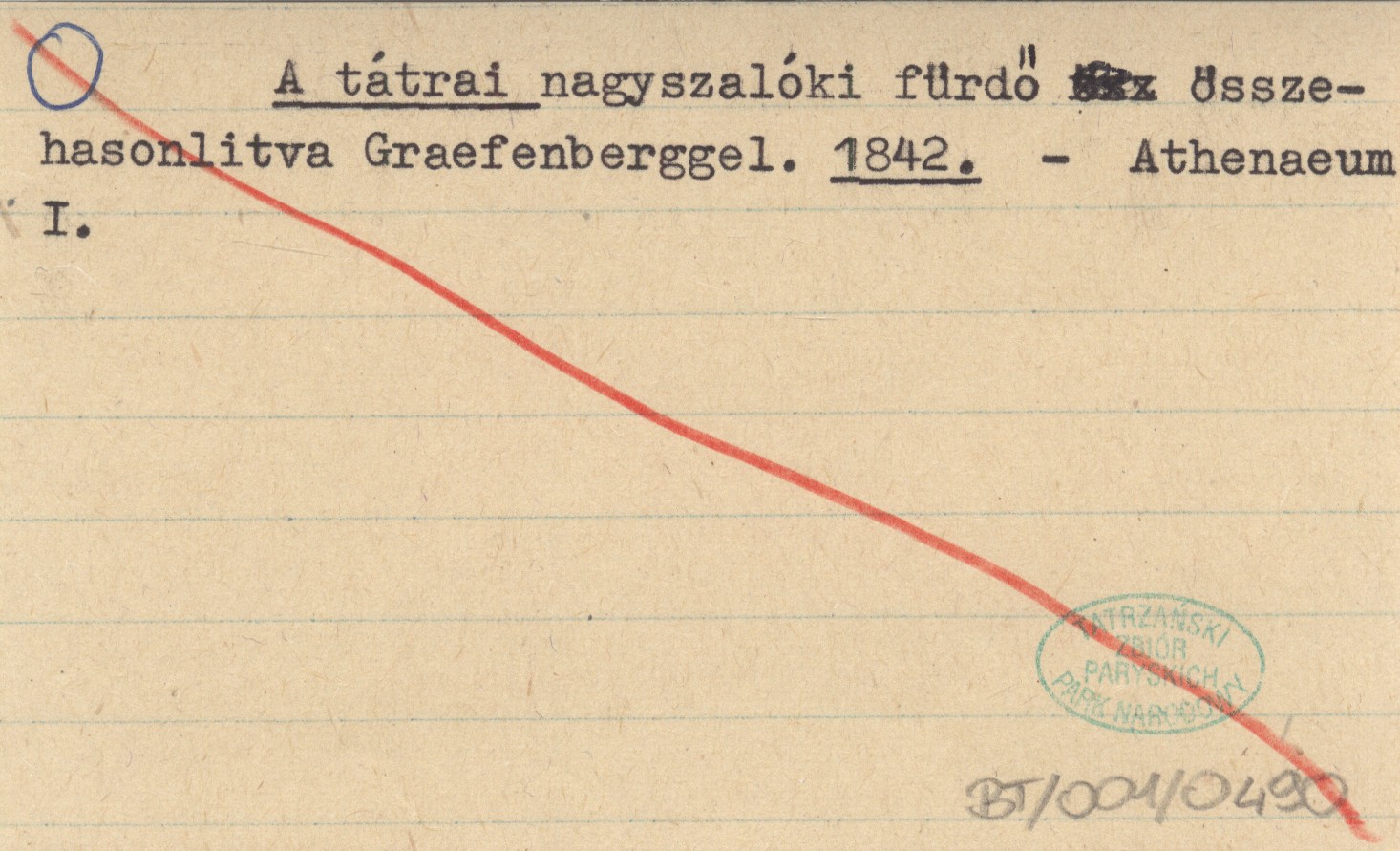 A tátrai nagyszalóki fürdö összehasonlitva Graefenberggel. 1842