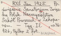 RYŚ Jan 1925 Poświęcenie Sanatorjum Związku Polsk. Nauczycielstwa Szkół Powszech. w Zakopanem.