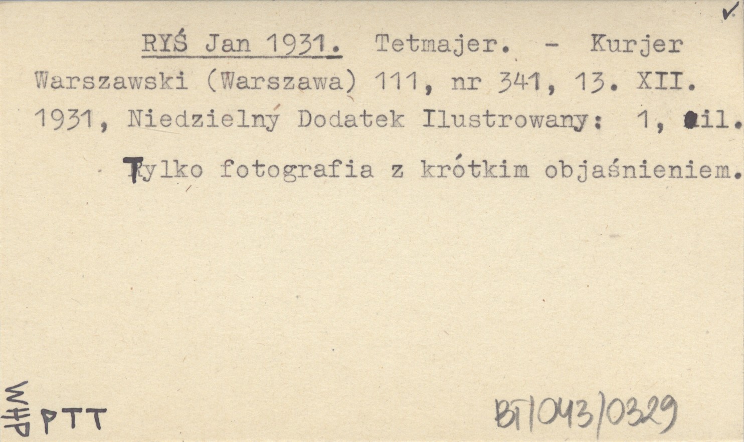 Kurjer Warszawski, Niedzielny Dodatek Ilustrowany (Warszawa) , 111, nr 341, 13 XII 1931 ; 1, il. Tylko fotografia z krótkim objaśnieniem.