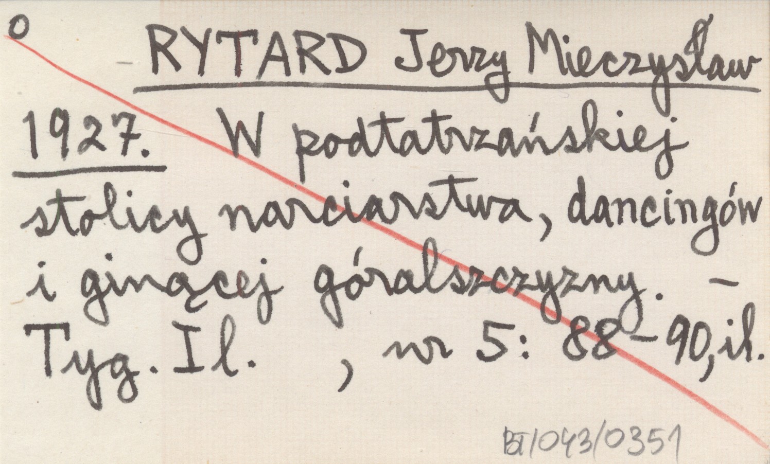 RYTARD Jerzy Mieczysław 1927 W podtatrzańskiej stolicy narciarstwa, dancingów i ginącej góralszczyzny.