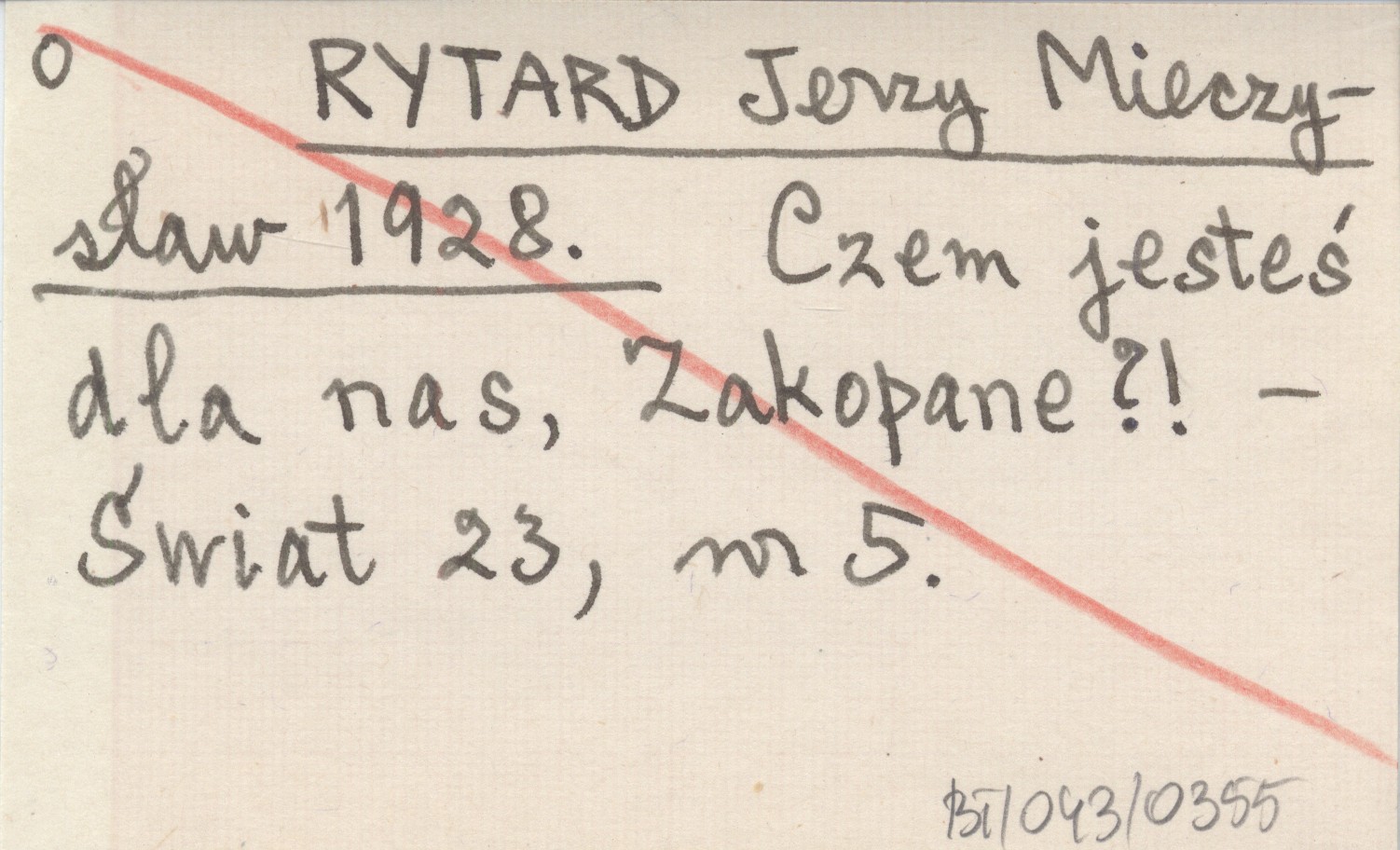 RYTARD Jerzy Mieczysław 1928 Czem jesteś dla nas, Zakopane?!