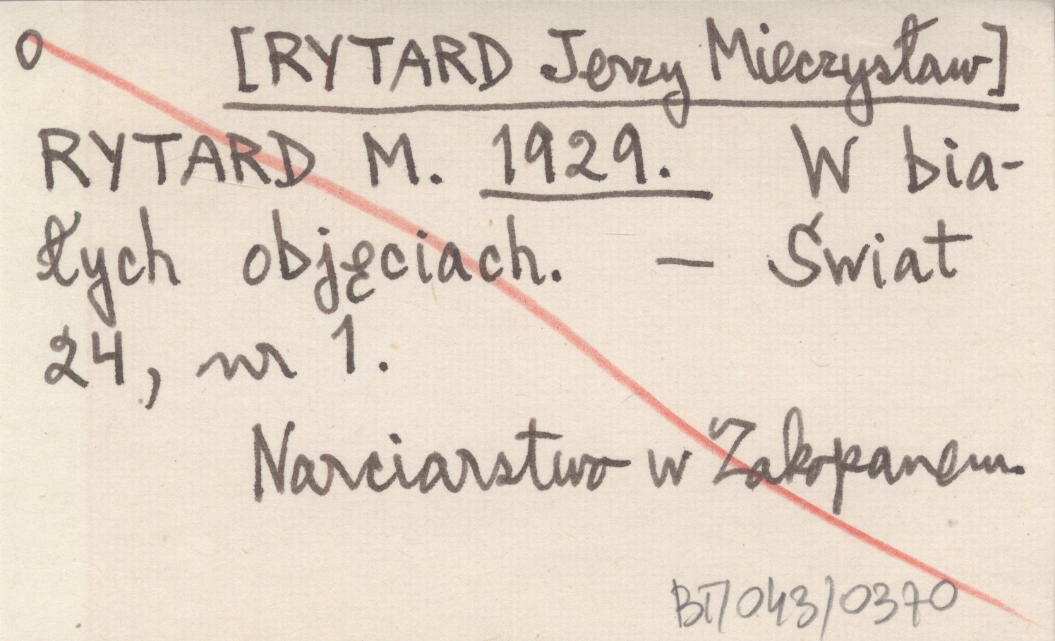 RYTARD M. [RYTARD Jerzy Mieczysław] 1929 W białych objęciach.