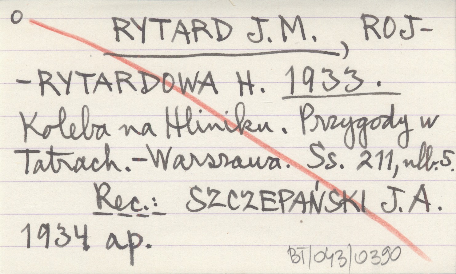 RYTARD J. M. ROJ-RYTARDOWA, H. ; 1933 Koleba na Hliniku. Przygody w Tatrach.