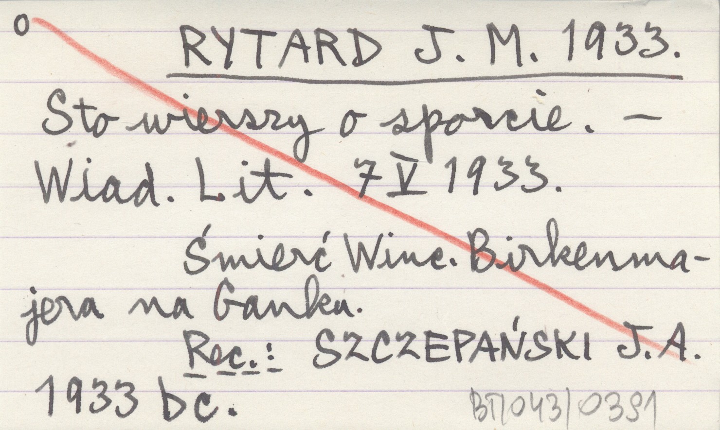 Wiadomości Literackie, 7 V 1933. Śmierć Winc. Birkenmajera na Ganku. REC: SZCZEPAŃSKI J. A. 1933 bc
