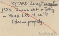 RYTARD Jerzy Mieczysław 1934 Znowu spór o Tatry.
