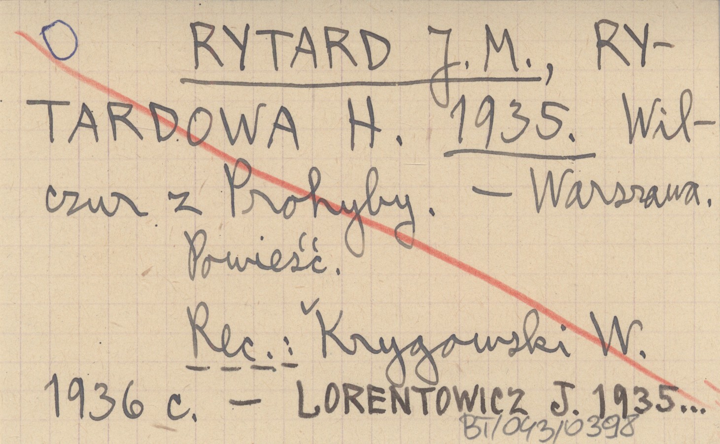 RYTARD J. M. RYTARDOWA, H. ; 1935 Wilczur z Prohyby.
