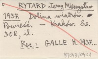 Kraków , 308 s., il. Powieść. REC: KRYGOWSKI Władysław, Wierchy (Kraków) 15 (1937): 240 ; GALLE H. 1937... ;