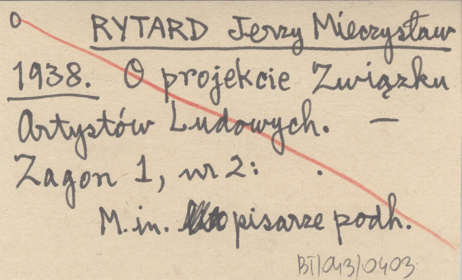 RYTARD Jerzy Mieczysław 1938 O projekcie Związku Artystów Ludowych.
