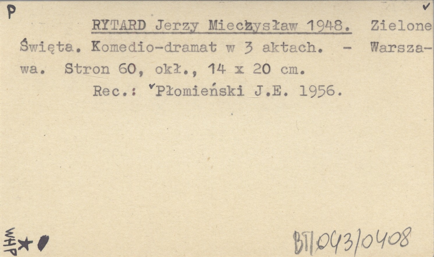 RYTARD Jerzy Mieczysław 1948 Zielone Święta. Komedio-dramat w 3 aktach.