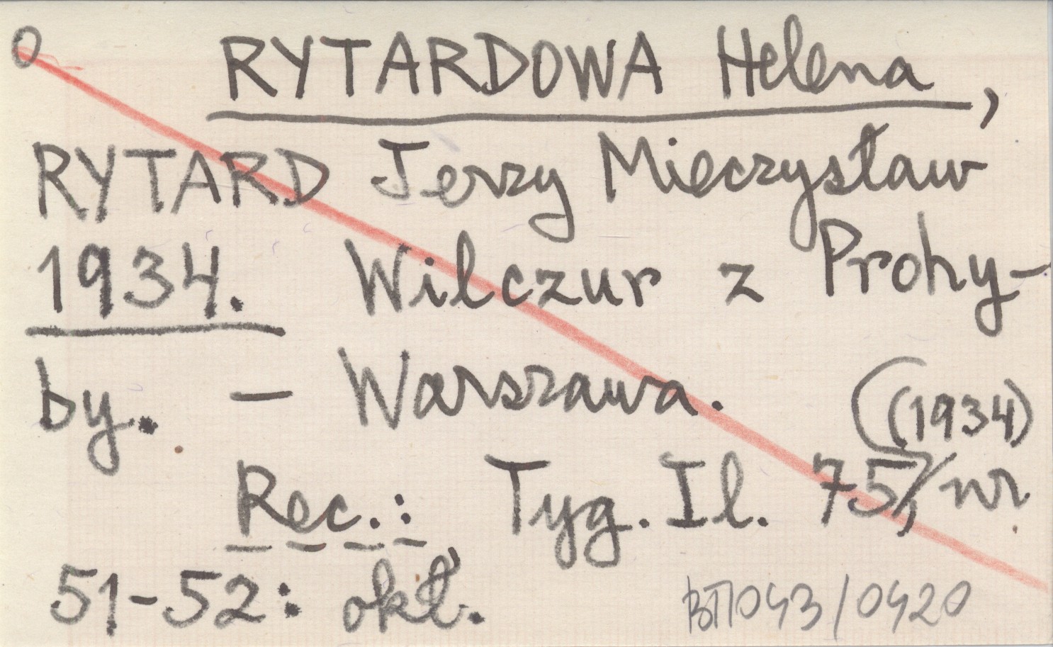 RYTARDOWA Helena RYTARD, Jerzy Mieczysław. ; 1934 Wilczur z Prohyby.