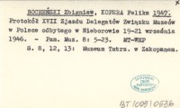 BOCHEŃSKI Zbigniew KOPERA, Feliks. ; 1947 Protokół XVII Zjazdu Delegatów Związku Muzeów w Polsce odbytego w Nieborowie 19-21 września 1946.