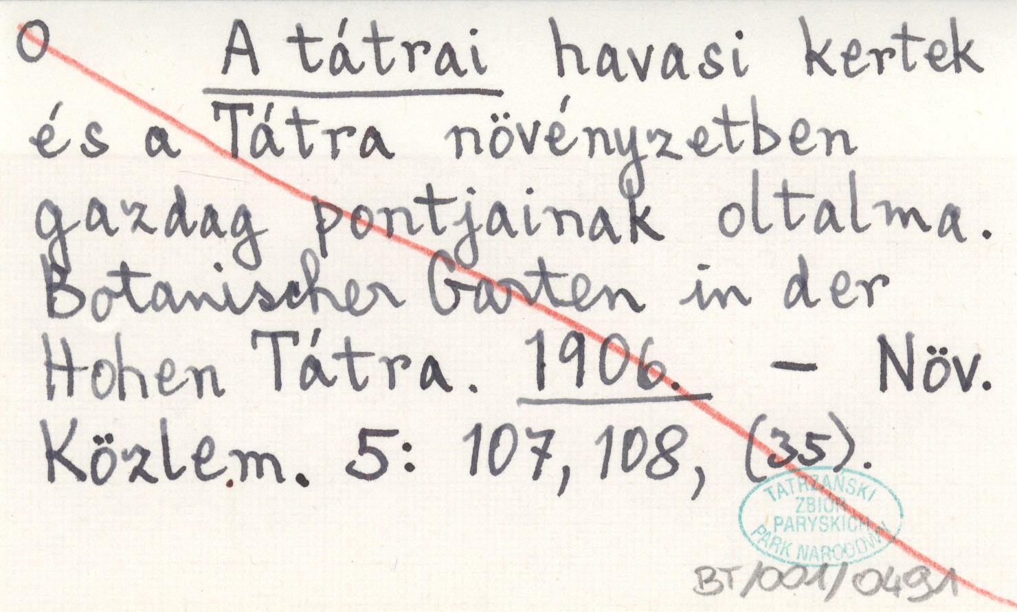 A tátrai havasi kertek és a Tátra növényzetben gazdag pontjainak oltalma. Botanischer Garten in der Hohen Tátra. 1906