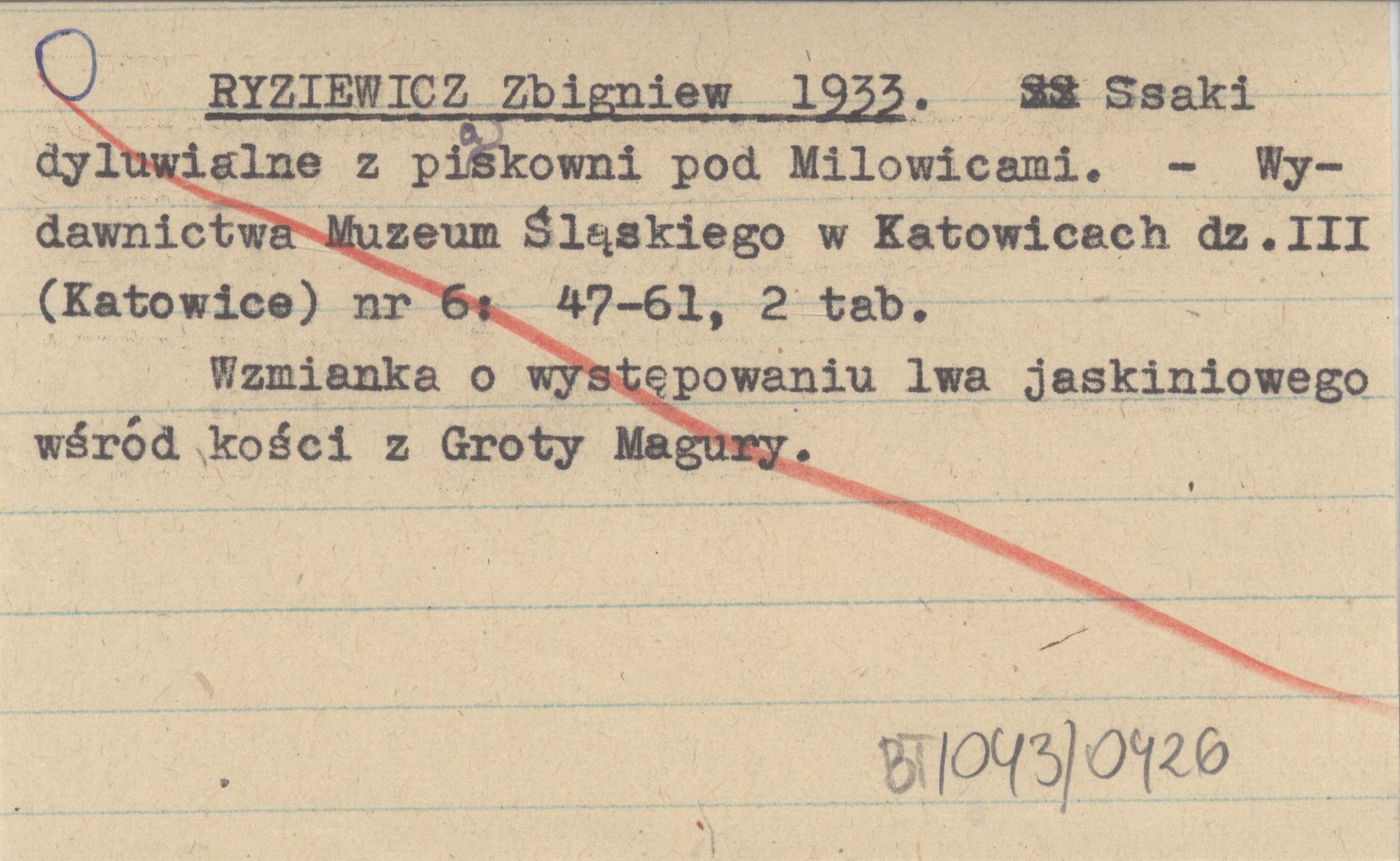 RYZIEWICZ Zbigniew 1933 Ssaki dyluwialne z piaskowni pod Milowicami.