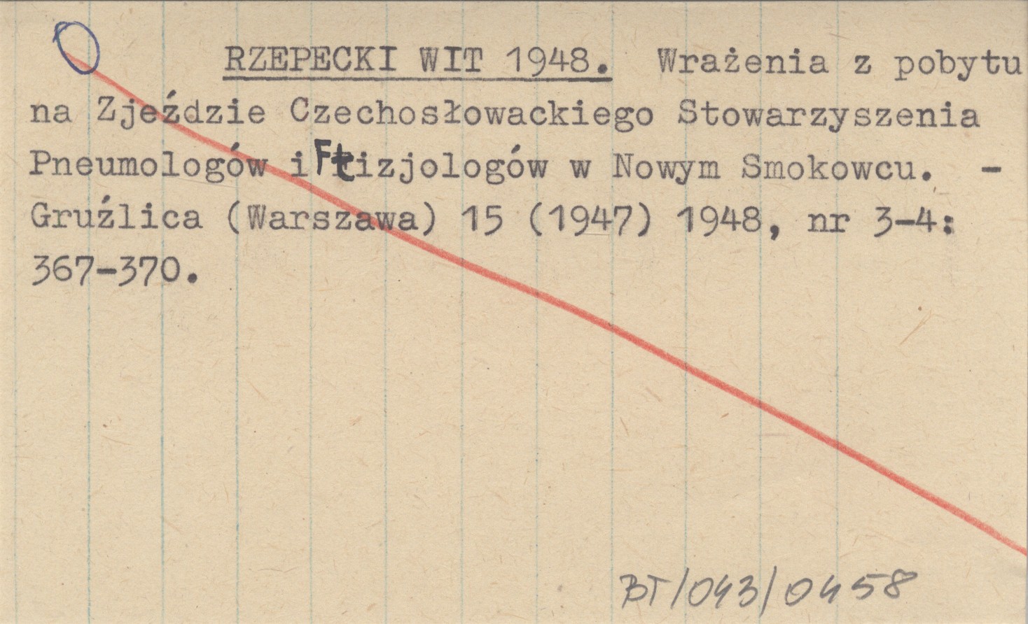 RZEPECKI Wit 1948 Wrażenia z pobytu na Zjeździe Czechosłowackiego Stowarzyszenia Pneumologów i Ftizjologów w Nowym Smokowcu.