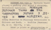 RZEPECKI Wit 1954 a Wycięcie tkanki płucnej w gruźlicy płuc dzieci i młodzieży. Doniesienie tymczasowe. Rezekcija legočnoj tkani pri tuberkuleze legkich u detej i molodeži. Pulmonary Resection in Pulmonary Tuberculosis in Children and Youth.