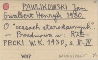 PAWLIKOWSKI Jan Gwalbert Henryk 1930 O "czasach starodawnych".