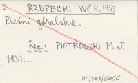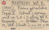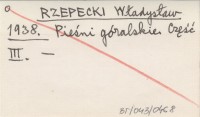 RZEPECKI Władysław 1938 Pieśni góralskie. Część III.
