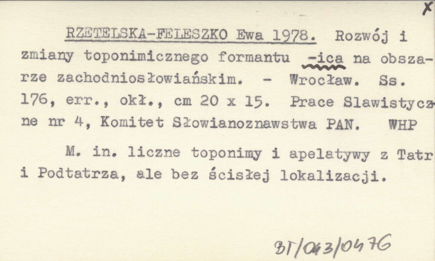RZETELSKA-FELESZKO Ewa 1978 Rozwój i zmiany toponimicznego formantu -ica na obszarze zachodniosłowiańskim.