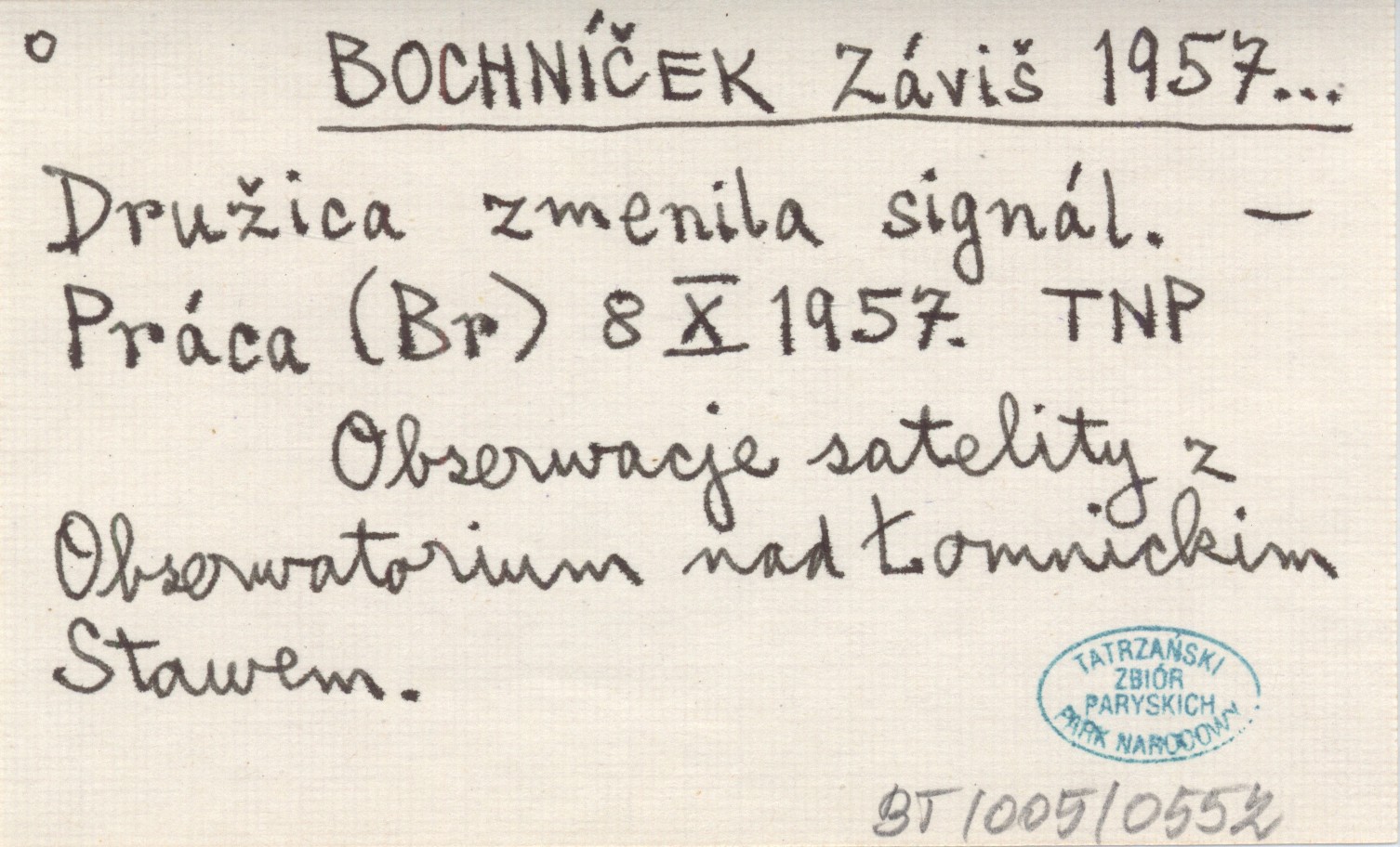 Práca ((Br)) , 8 X 1957. Obserwacje satelity z Obserwatorium nad Łomnickim Stawem.