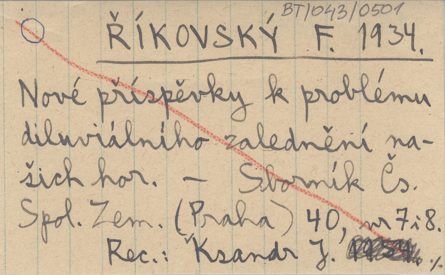 ŘÍKOVSKÝ F. 1934 Nové příspěvky k problému diluviálního zalednění naąich hor.