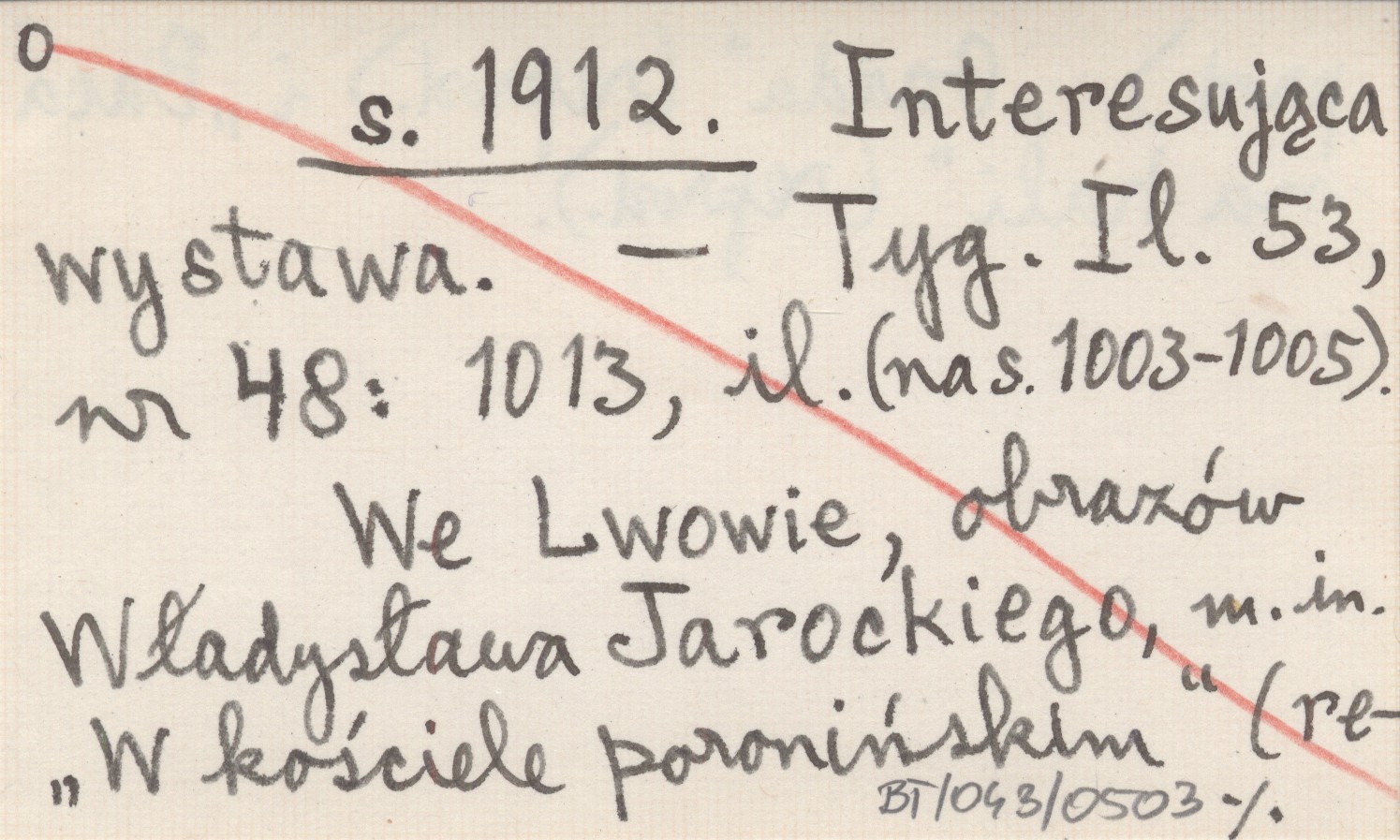 Tygodnik Ilustrowany, 53, nr 48: 1003-1005 (il.), 1013. We Lwowie, obrazów Władysława Jarockiego, .in. "W kościele poronińskim" (reprod.), "Gazda" (reprod.) i "Baca na hali" (reprod.).